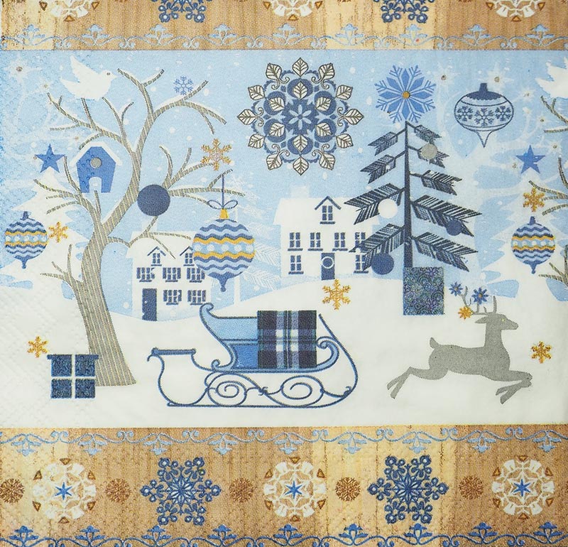 Салфетка Новогодний бордюр 0008231 трехслойная 33x33 см