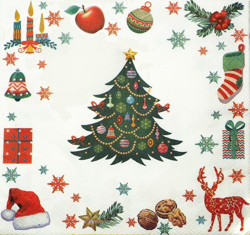 Салфетка Елочные украшения 0005434 двухслойная 33x33 см