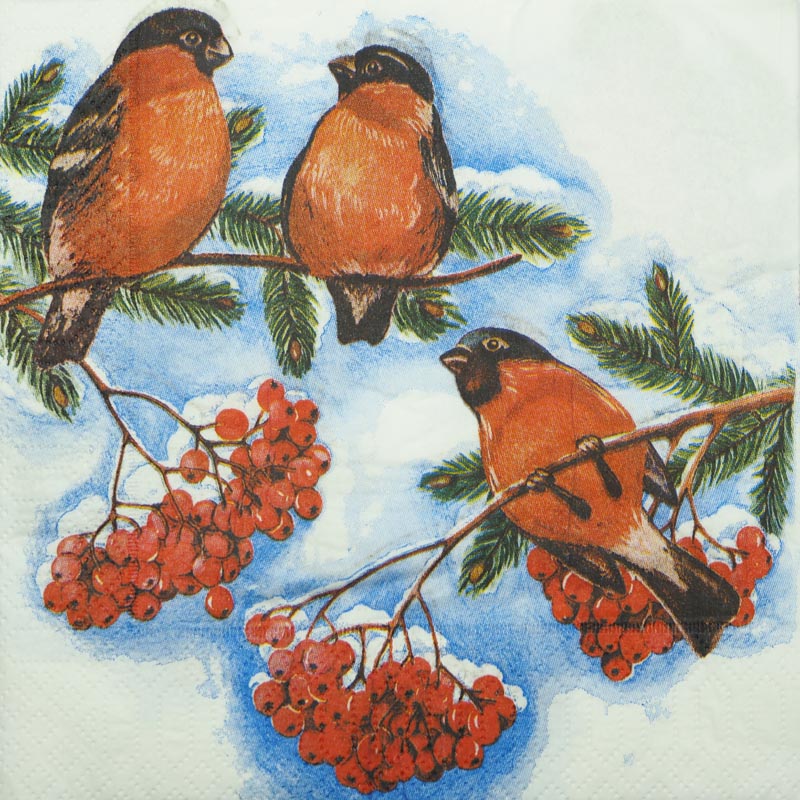 Салфетка Снегири 0009429 трехслойная 33x33 см