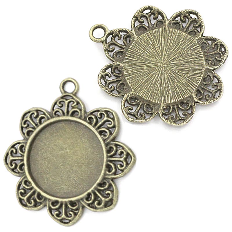Рамка Узорная для круглого кабошона 20 мм 0009658 бронзовый цвет 39x33 мм