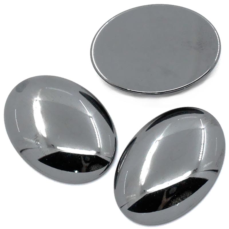 Кабошон натуральный камень Гематит 0009671 овальный выпуклый 25х18 мм