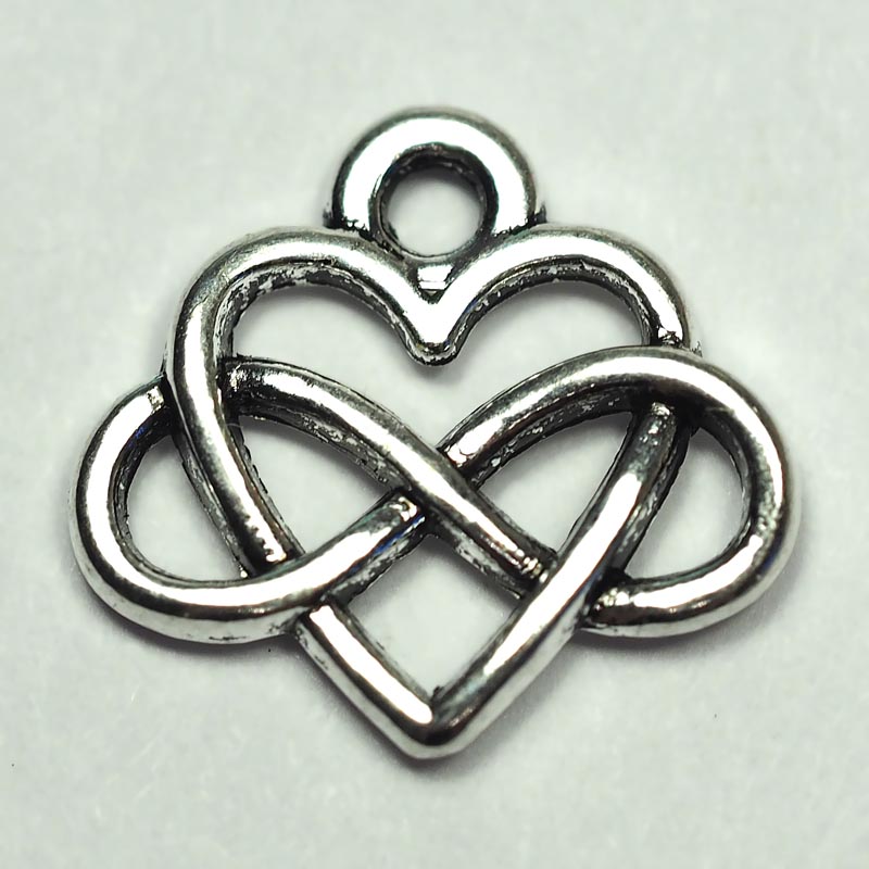 Подвеска Сердце с бесконечностью 0009715 серебряный цвет 14x15х1 мм