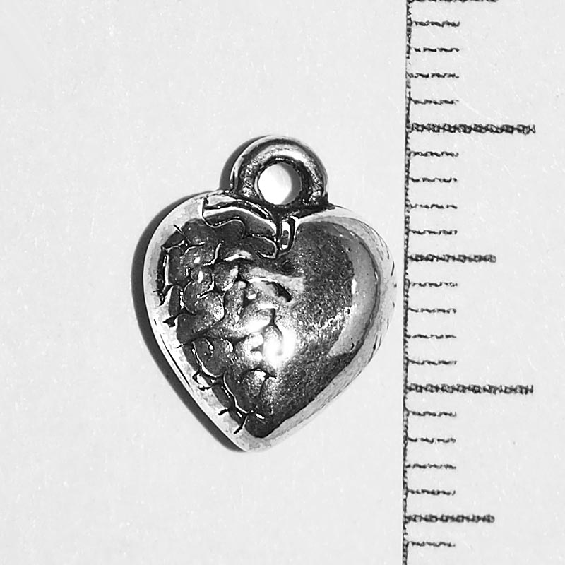 Подвеска Сердечко объемное 0009843 серебряный цвет 12x10x6 мм