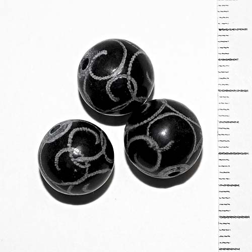 Натуральная бусина Дзи Агат тибетский черный 0010135 шарик с узором 12 мм