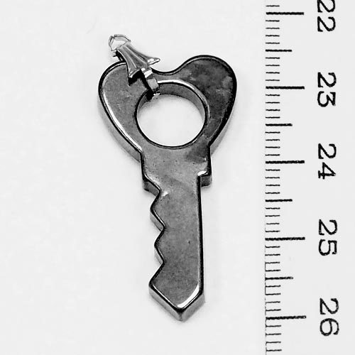 Кулон натуральный камень Гематит Ключ 0010161 с петлей и держателем 33х17х4 мм