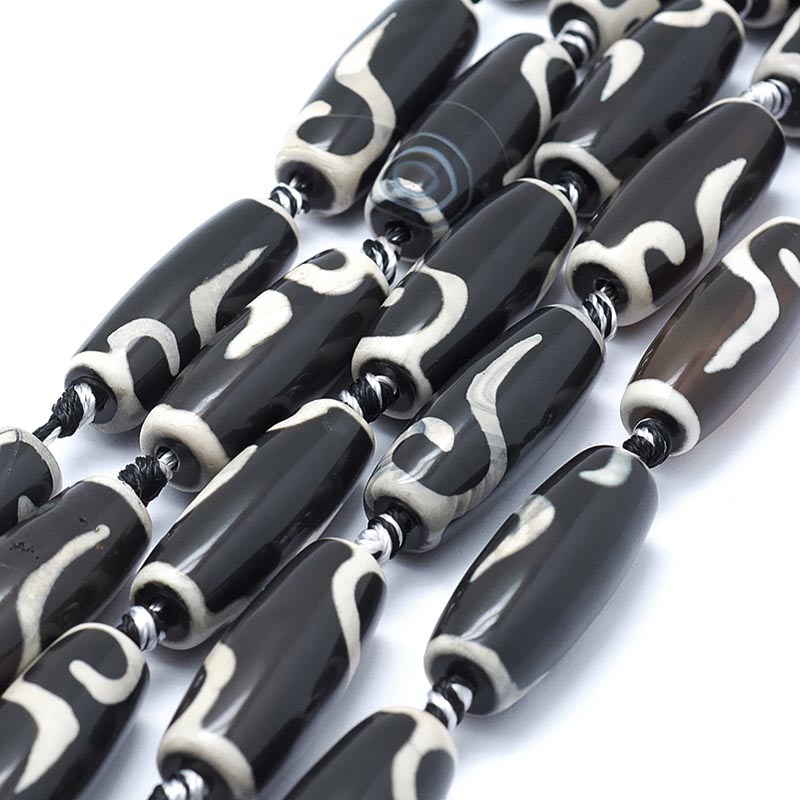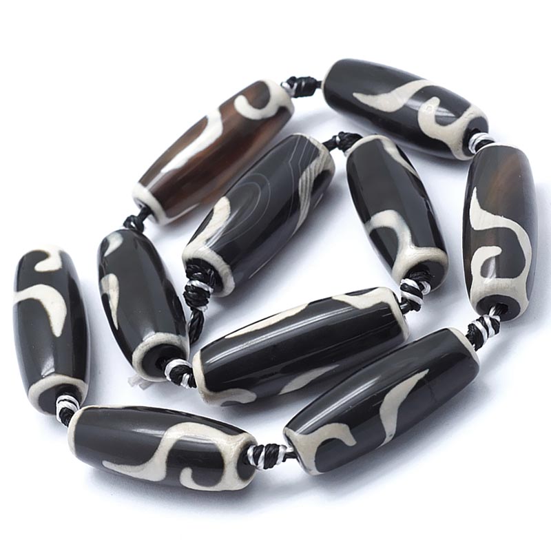 Бусина Дзи натуральный камень Агат черный с белым 9-глазая 0005900 цилиндр 30x12 мм
