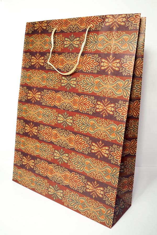 Пакет подарочный бумажный 0010403 Крафт с орнаментом 36x26x9 см