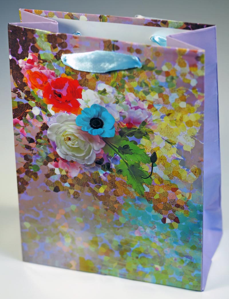 Пакет подарочный бумажный ламинированный 0010424 Цветы 32x26x10 см