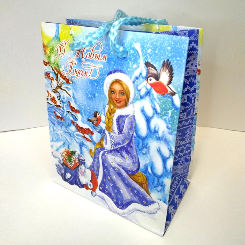 Пакет подарочный бумажный новогодний 0010463 Снегурочка 15x12x5.5 см