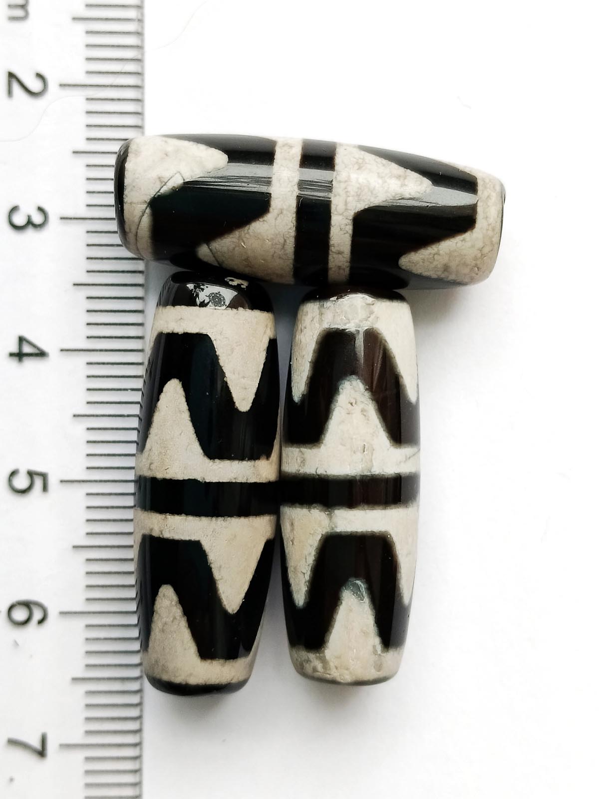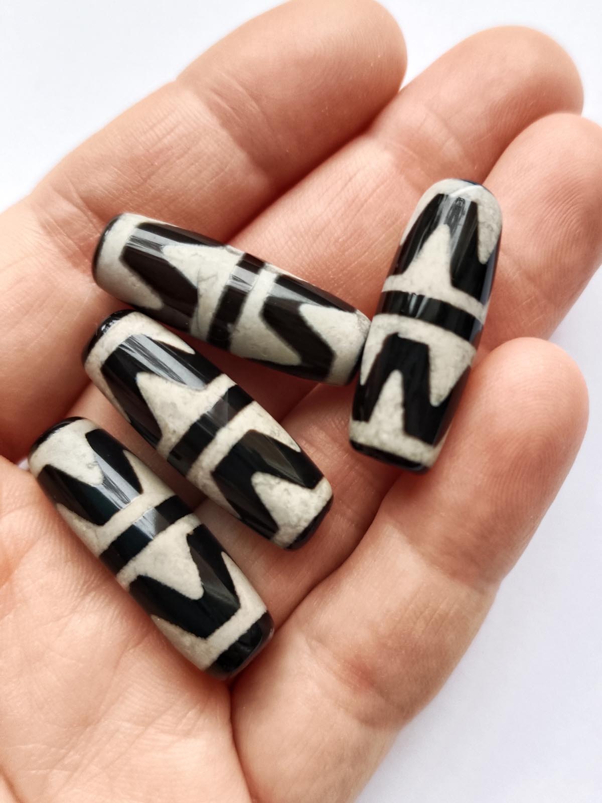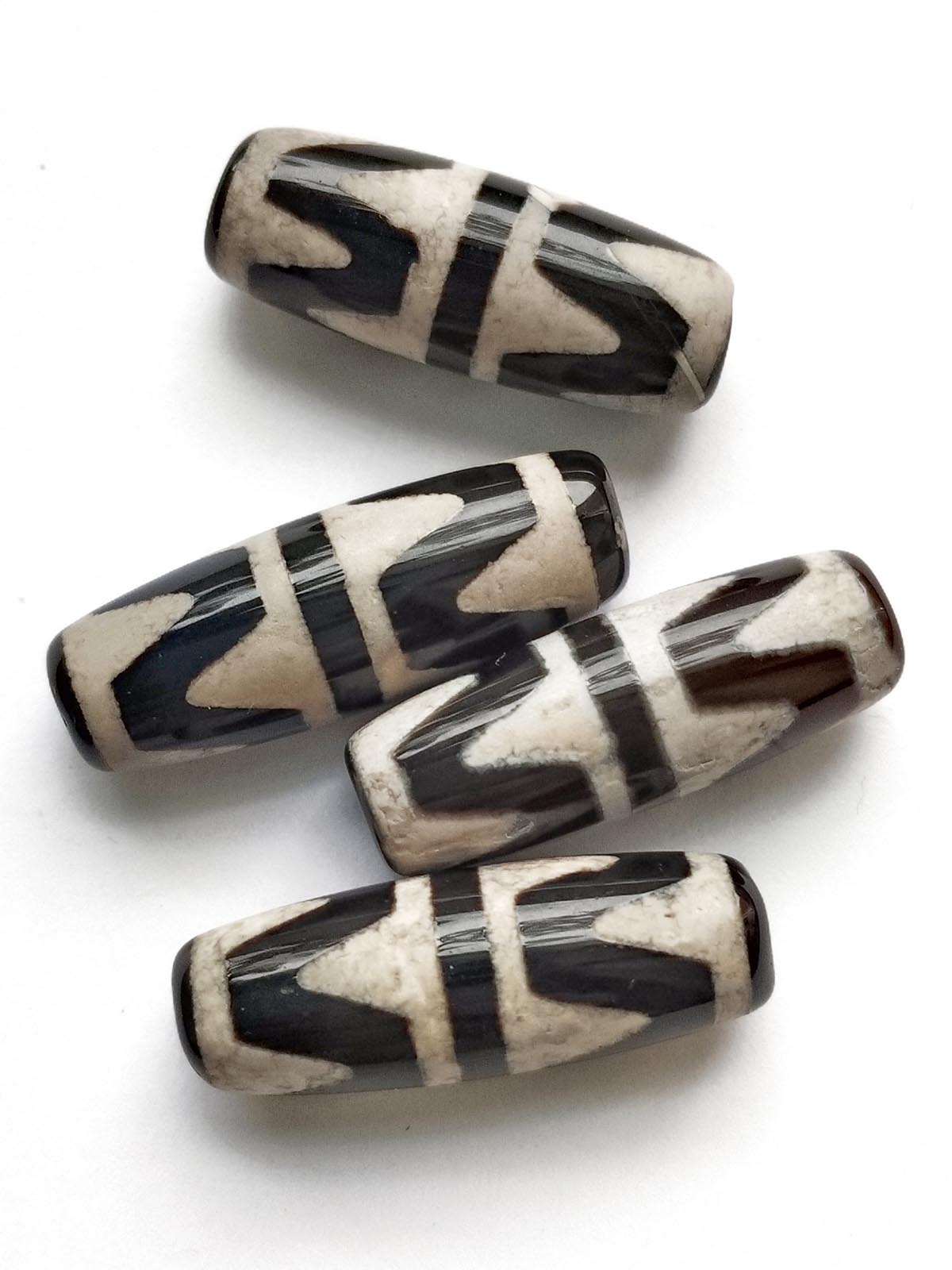 Бусина Дзи натуральный камень Агат черный с белым Зуб Тигра 0010501 цилиндр 30x12 мм