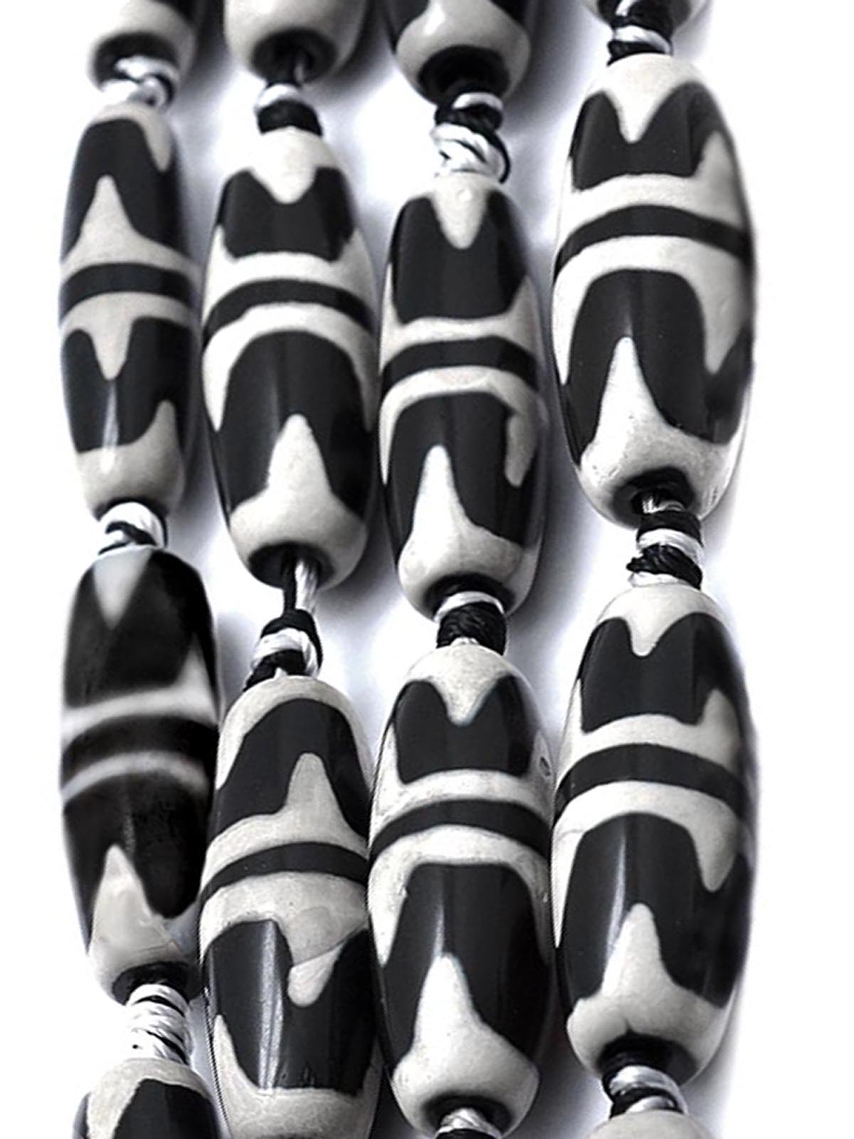 Бусина Дзи натуральный камень Агат черный с белым 9-глазая 0005900 цилиндр 30x12 мм
