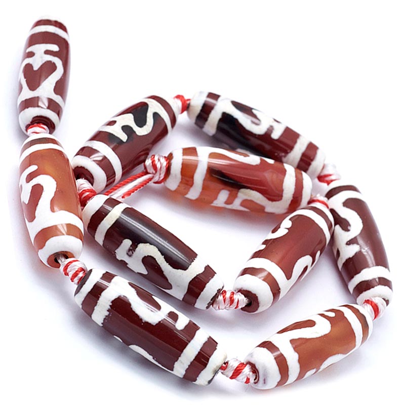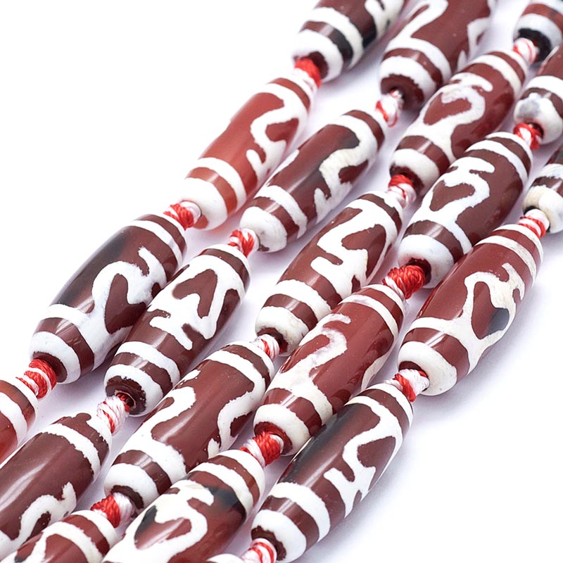 Бусина Дзи натуральный камень Агат коричневый с белым Зуб Тигра 0010500 цилиндр 30x12 мм