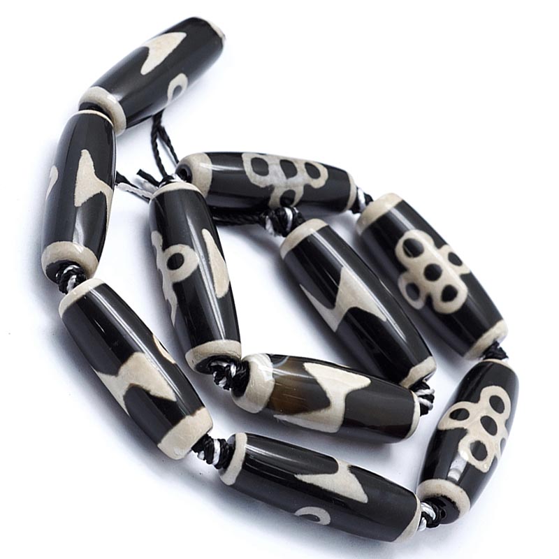 Бусина Дзи натуральный камень Агат черный с белым 9-глазая 0005900 цилиндр 30x12 мм