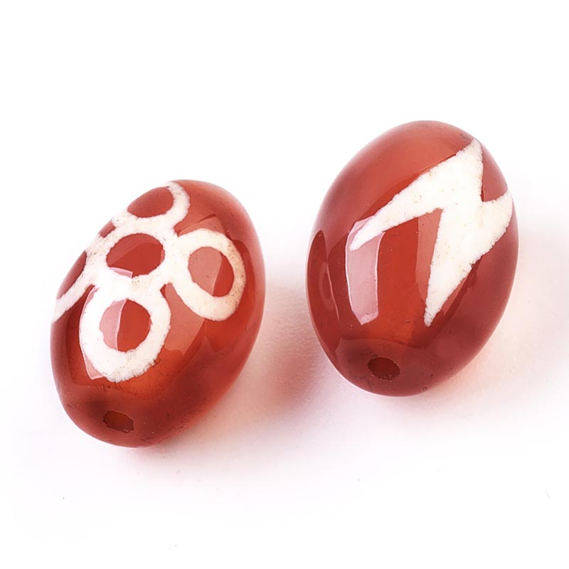 Бусина Дзи натуральный камень Агат коричневый с белым Гаруда 0010506 цилиндр 14x10 мм