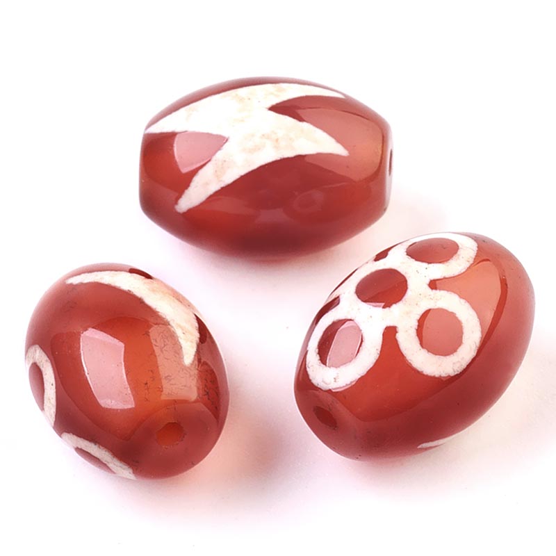 Бусина Дзи натуральный камень Агат коричневый с белым 9-глазая 0006528 цилиндр 30x12 мм