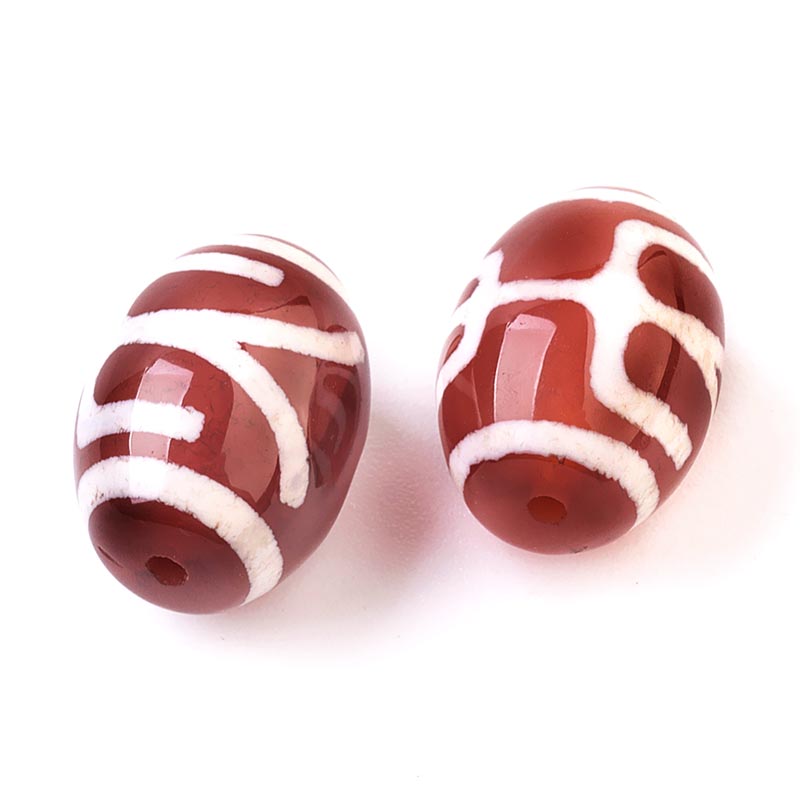 Бусина Дзи натуральный камень Агат коричневый с белым Большой человек 0010512 цилиндр 14x10 мм