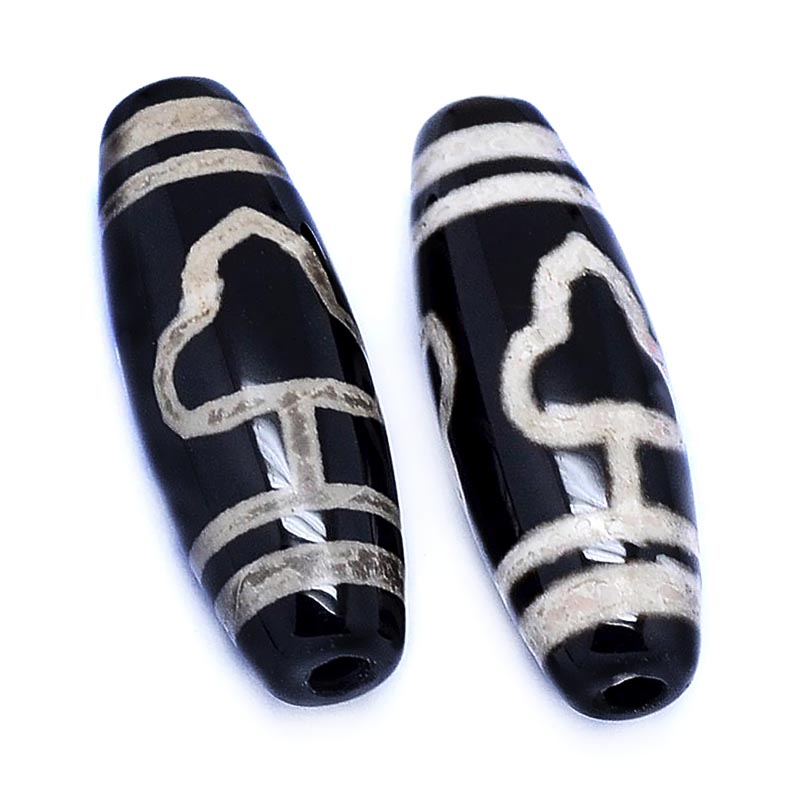 Бусина Дзи натуральный камень Агат черный с белым Бодхи 0010533 цилиндр 30x12 мм