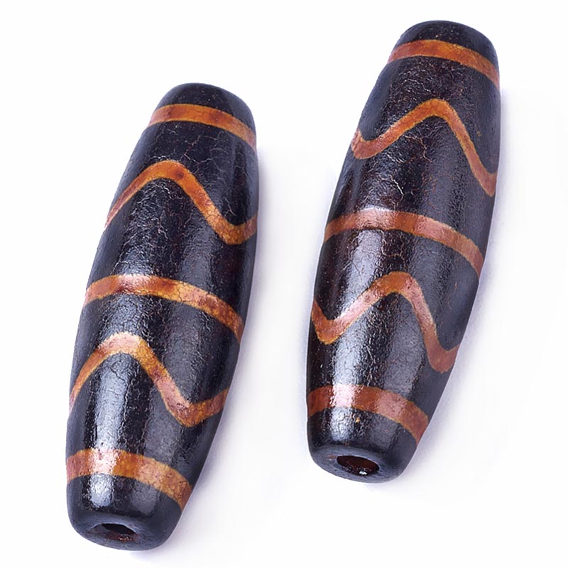 Бусина Дзи натуральный камень Агат черный экзотика Волна 0010541 цилиндр 30x12 мм