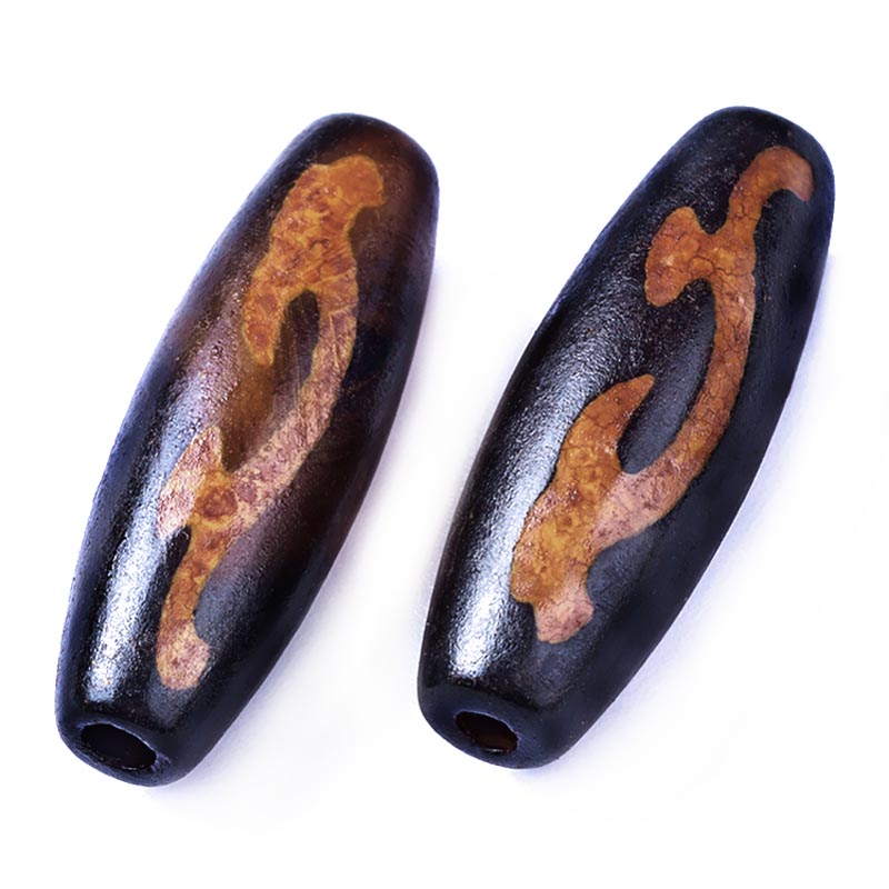 Бусина Дзи натуральный камень Агат черный экзотика Небо и Земля 0010534 цилиндр 30x12 мм