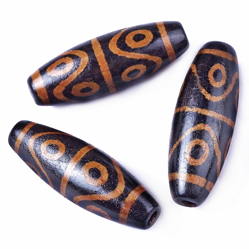 Бусина Дзи натуральный камень Агат коричневый с белым 9-глазая 0006528 цилиндр 30x12 мм