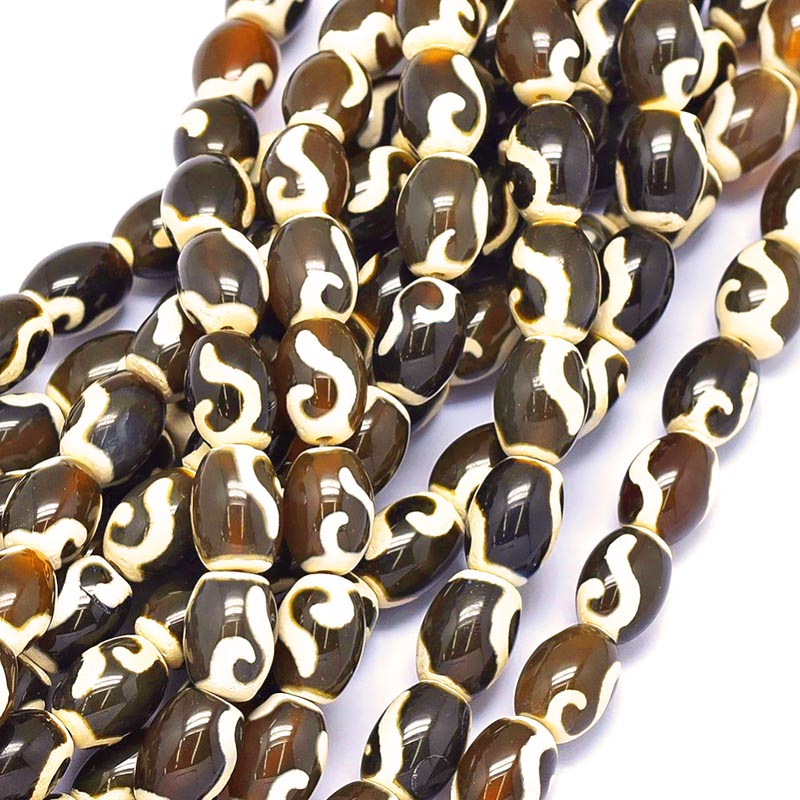 Бусина Дзи натуральный камень Агат коричневый с белым 9-глазая 0006528 цилиндр 30x12 мм