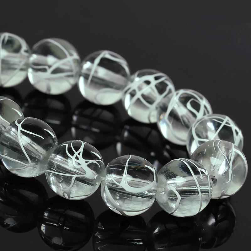 Стеклянная бусина Шарик с белыми полосами 0010591 прозрачный 10 мм