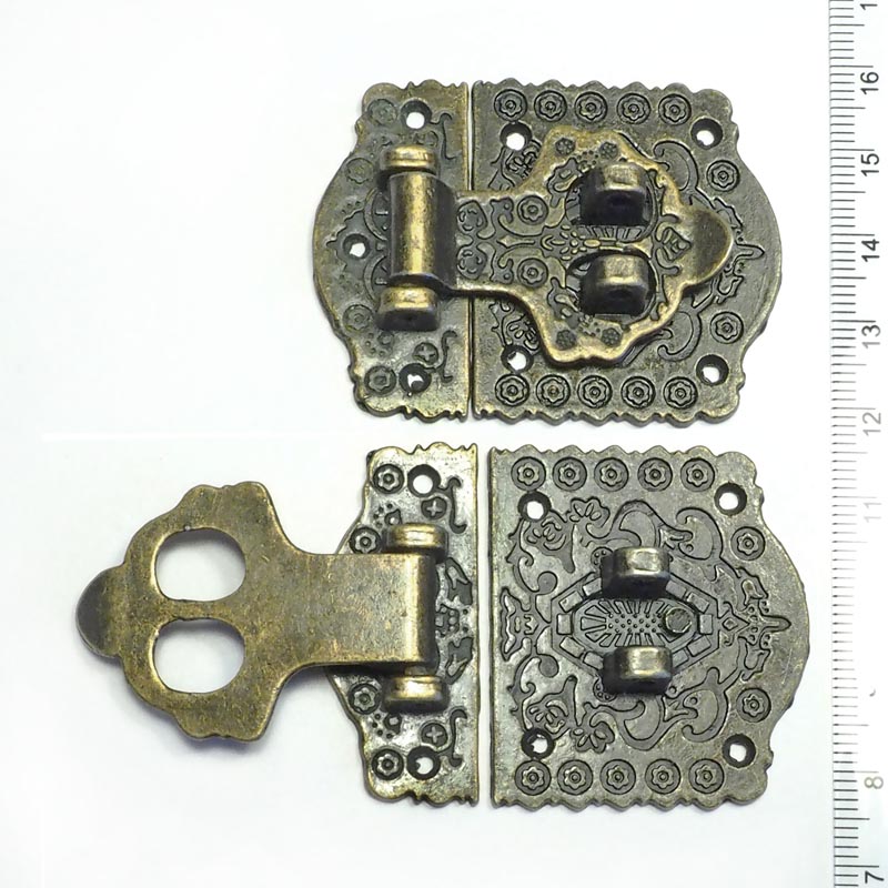 Замочек для шкатулки Двойной 0010766 бронзовый цвет 52х40 мм