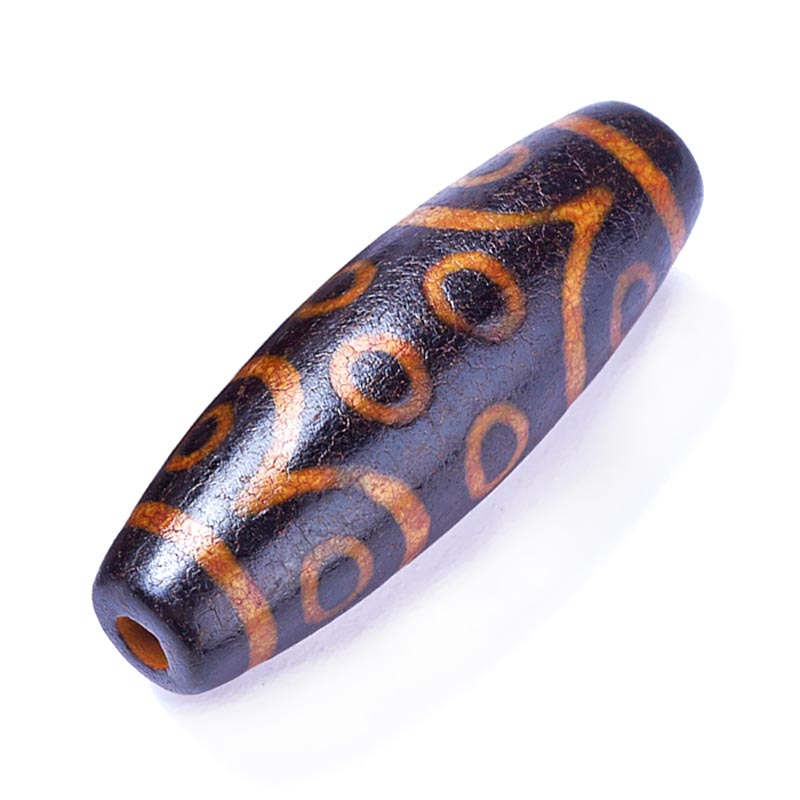 Бусина Дзи натуральный камень Агат коричневый с белым 9-глазая 0006528 цилиндр 30x12 мм