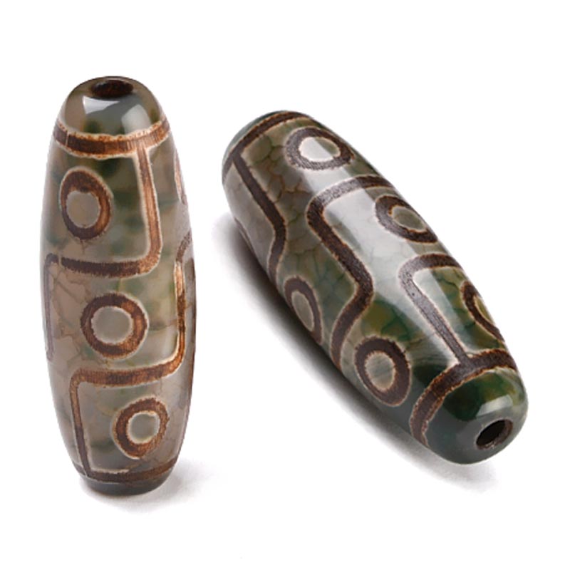 Бусина Дзи натуральный камень Агат серо-зеленый экзотика 9-глазая 0010809 цилиндр 30x12 мм