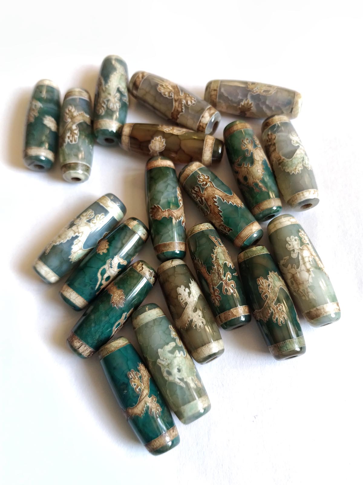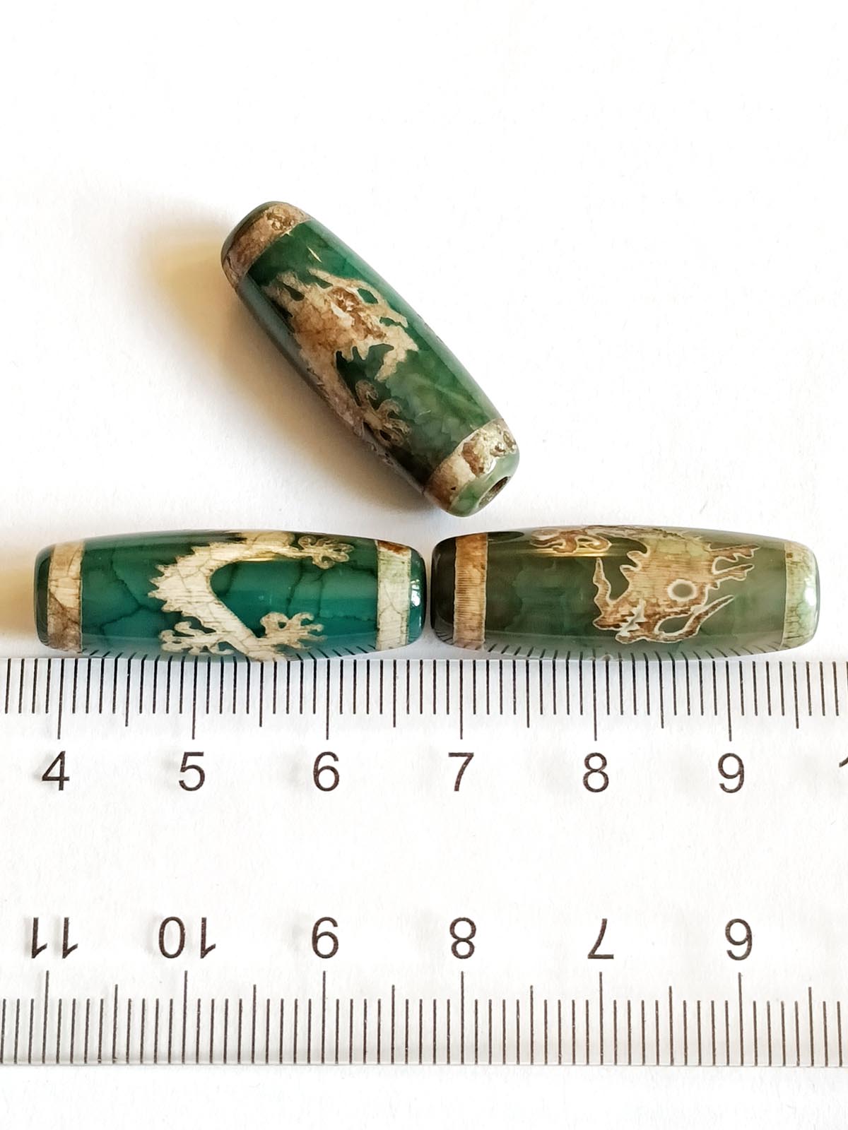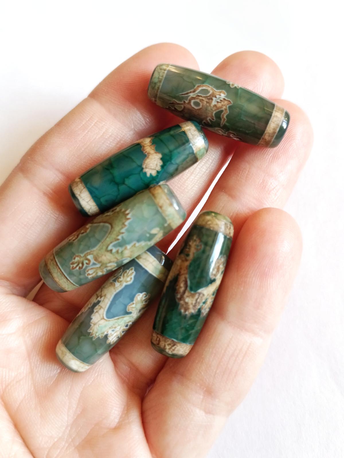 Бусина Дзи натуральный камень Агат серо-зеленый экзотика Дракон 0010814 цилиндр 30x12 мм