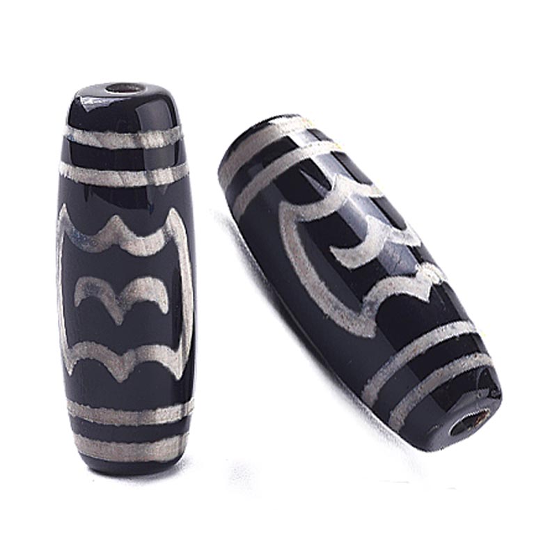 Бусина Дзи натуральный камень Агат черный с белым Птицы 0010818 цилиндр 30x12 мм