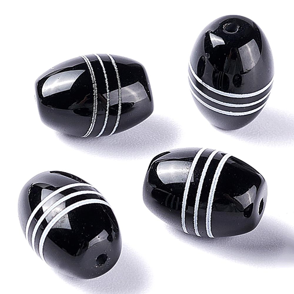 Бусина Дзи натуральный камень Агат черный с белым Чун Си 0010827 цилиндр 14x10 мм