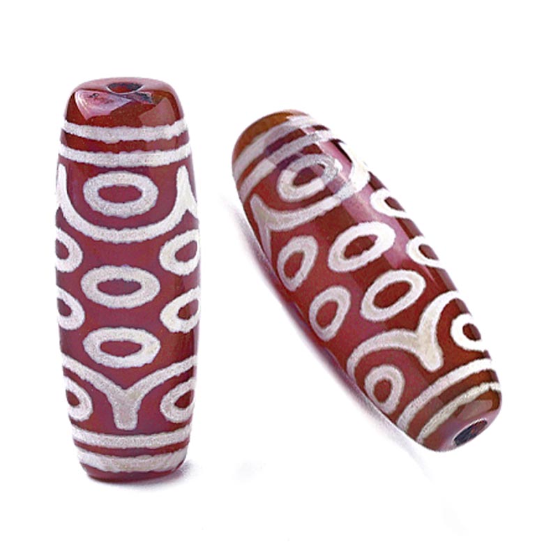 Бусина Дзи натуральный камень Агат коричневый с белым 9-глазая 0006528 цилиндр 30x12 мм