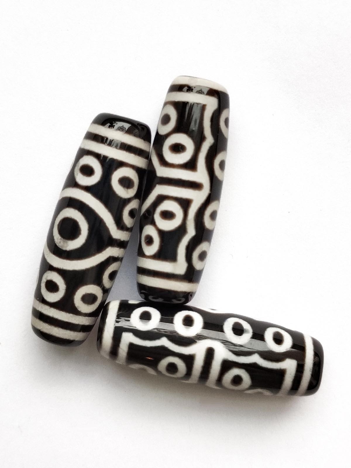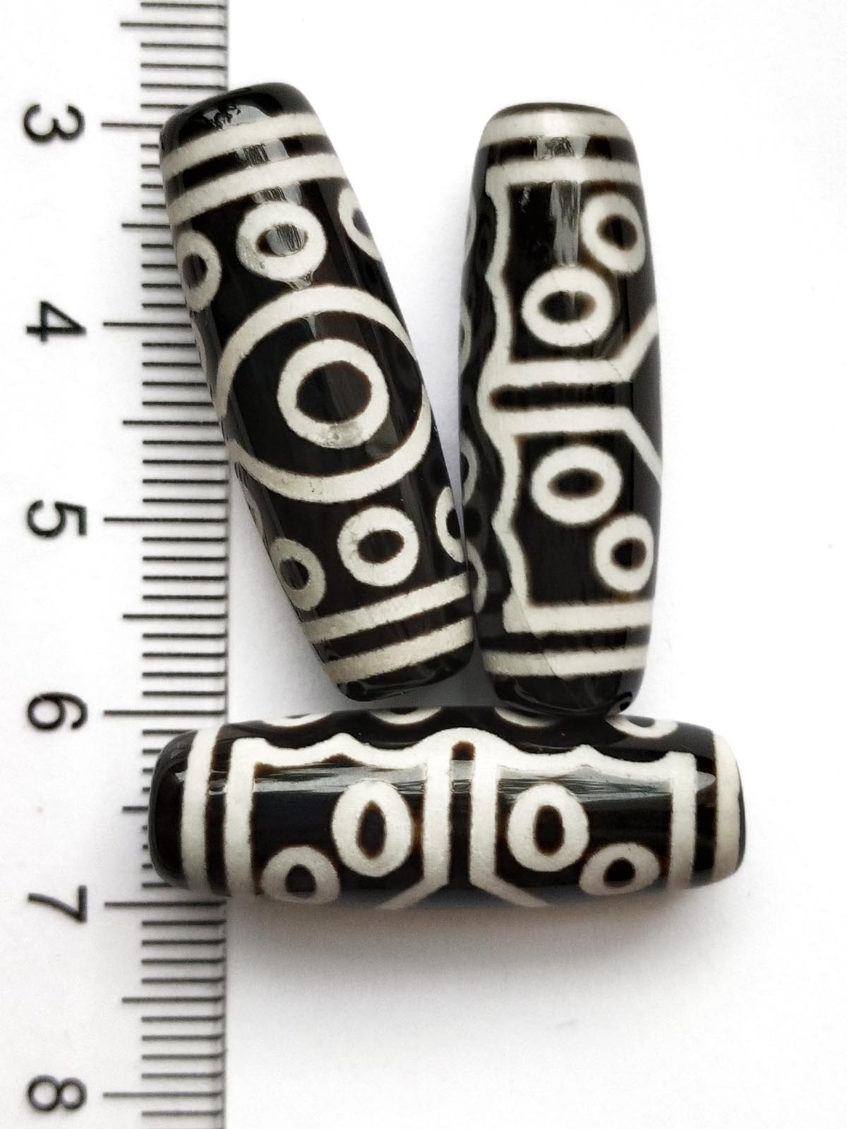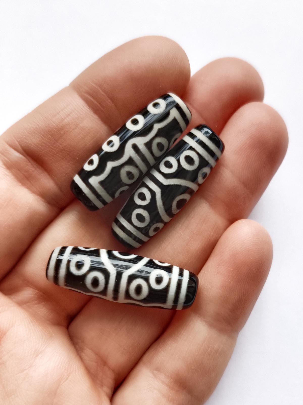 Бусина Дзи натуральный камень Агат черный с белым 15-глазая 0010830 цилиндр 30x12 мм