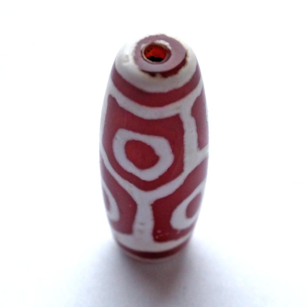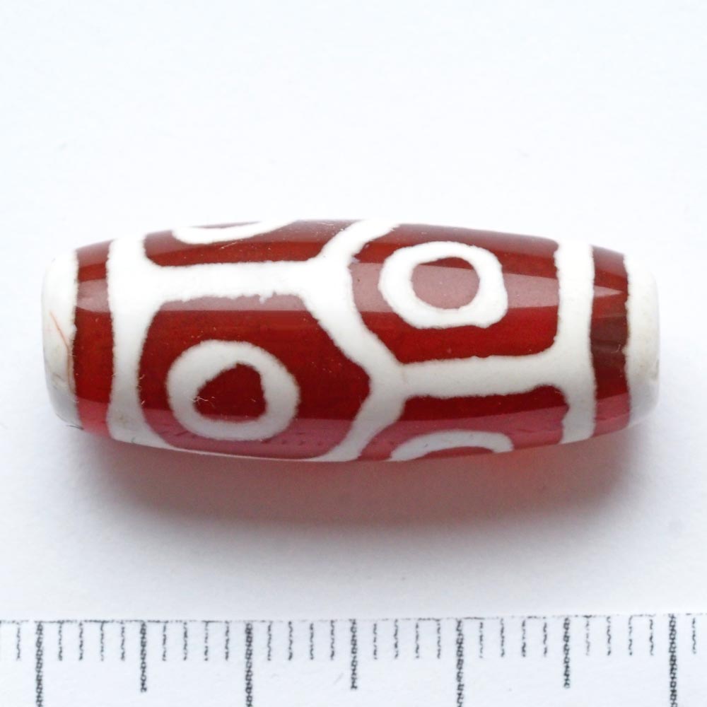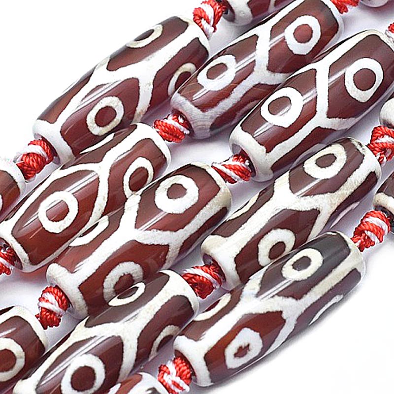 Бусина Дзи натуральный камень Агат коричневый с белым 9-глазая 0006528 цилиндр 30x12 мм