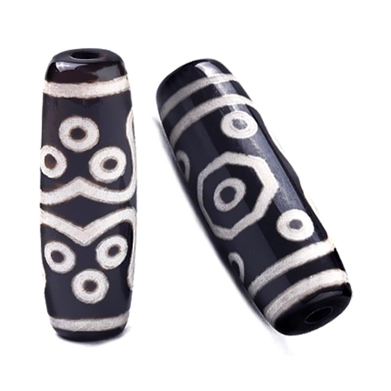 Бусина Дзи натуральный камень Агат черный с белым 11-глазая 0010838 цилиндр 30x12 мм