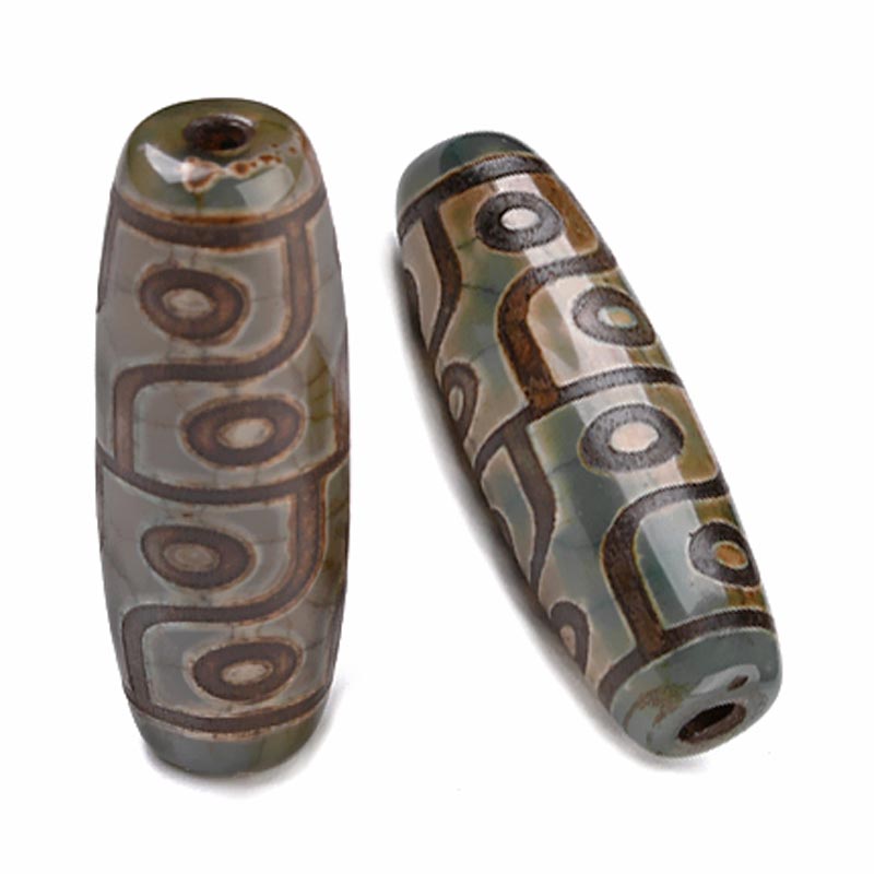 Бусина Дзи натуральный камень Агат серо-зеленый экзотика 12-глазая 0010839 цилиндр 30x12 мм