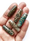 Бусина Дзи натуральный камень Агат серо-зеленый экзотика 7-глазая 0010840 цилиндр 30x12 мм