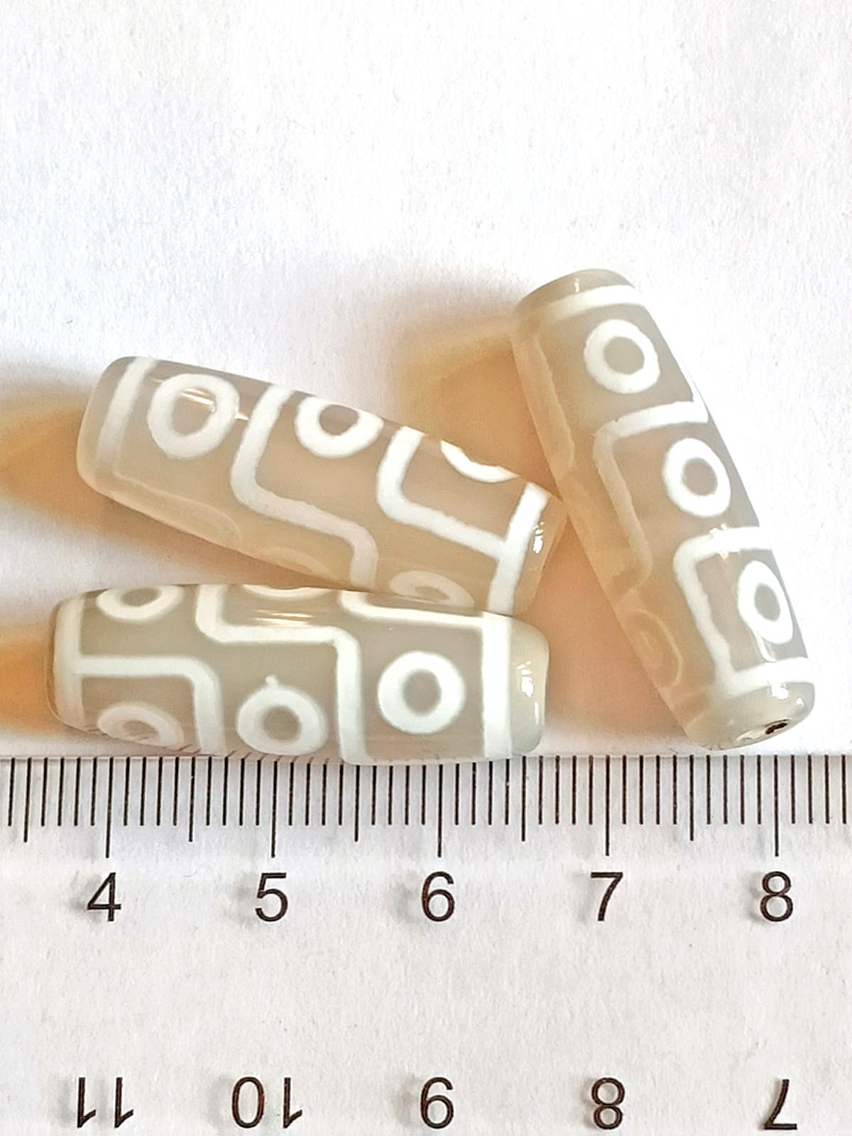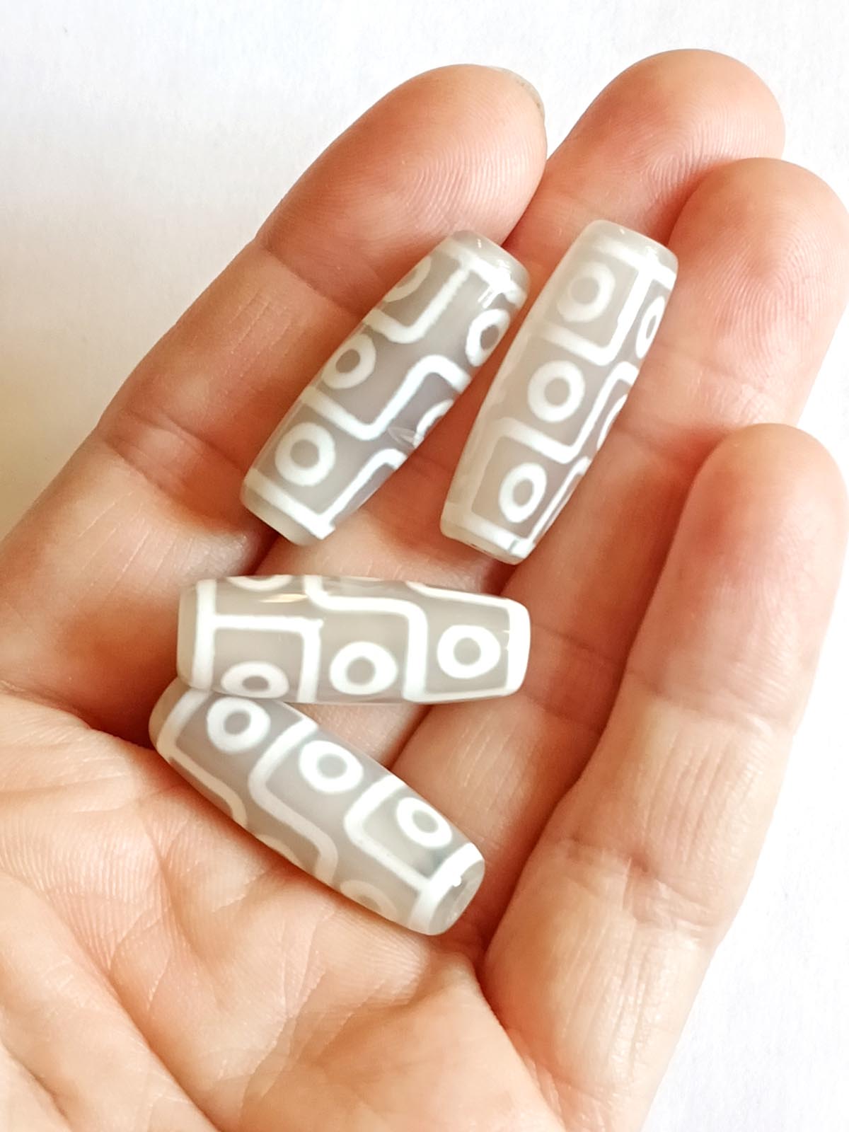 Бусина Дзи натуральный камень Агат серый с белым 9-глазая 0010843 цилиндр 30x12 мм