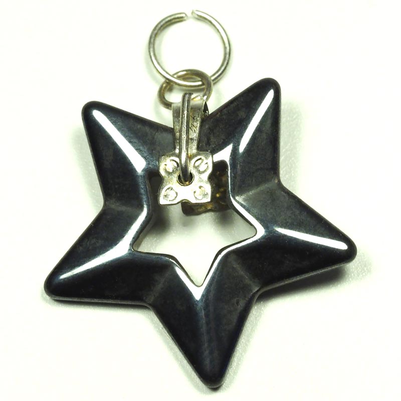 Кулон натуральный камень Гематит Звезда 0010847 с петлей и держателем 22х22х3 мм