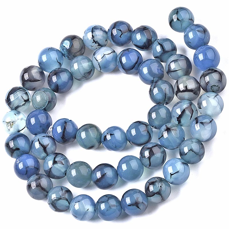 Натуральная бусина Агат Вены дракона голубой цвет 0010892 шарик 8 мм