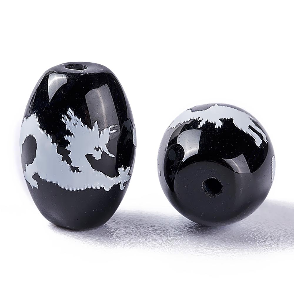 Бусина Дзи натуральный камень Агат черный с белым Дракон 0011025 цилиндр 14x10 мм