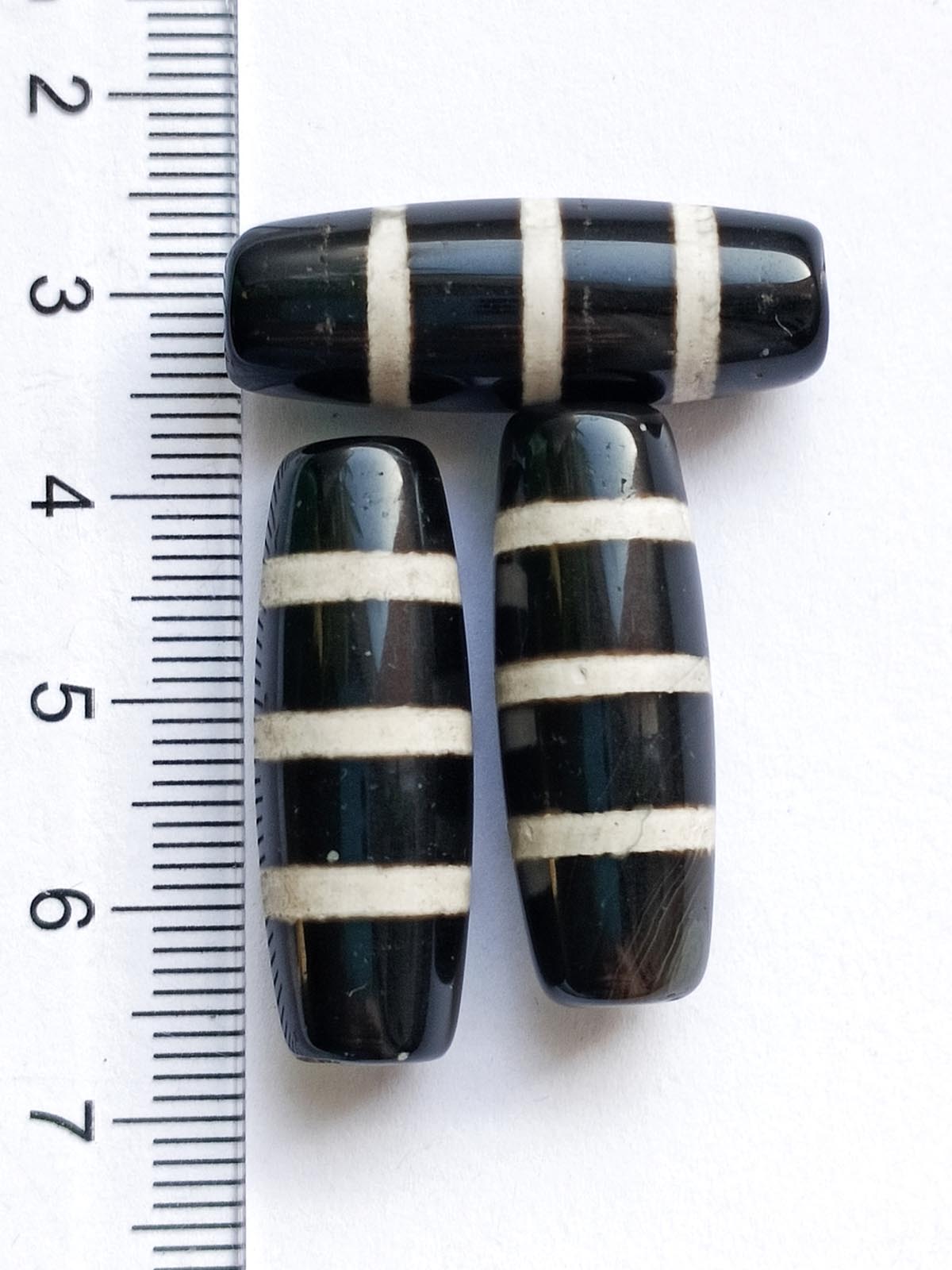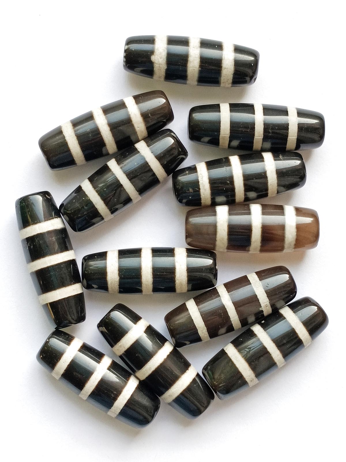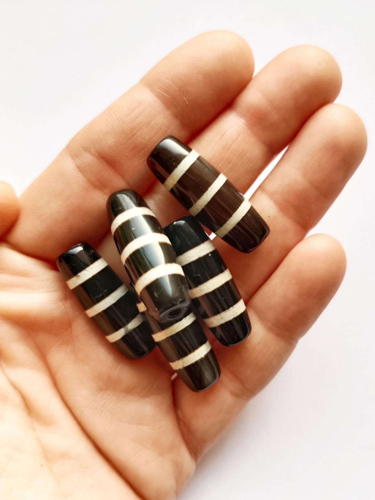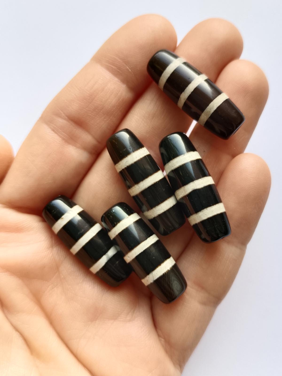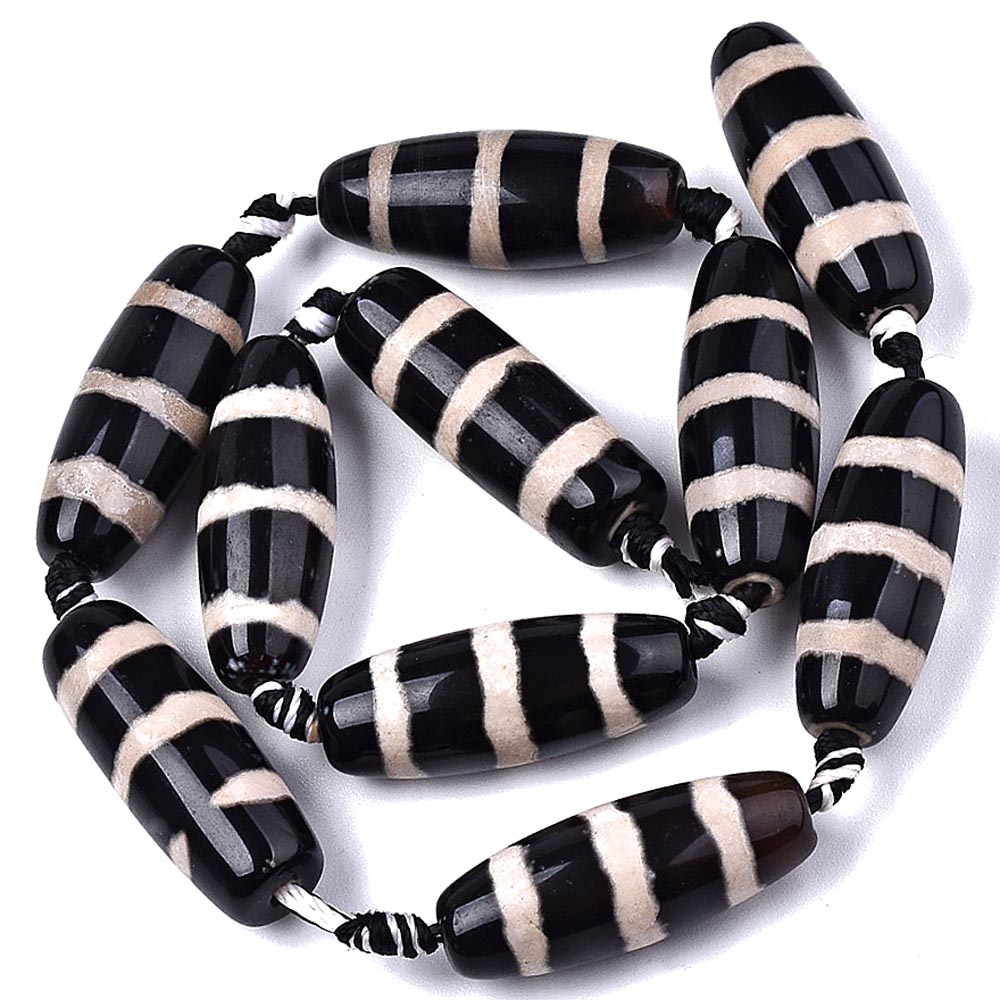 Бусина Дзи натуральный камень Агат черный с белым 9-глазая 0005900 цилиндр 30x12 мм