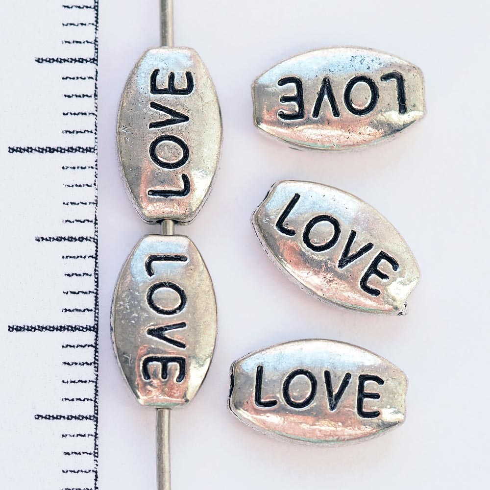 Металлическая бусина Овал Love 0011046 серебряный цвет 10x6х3 мм