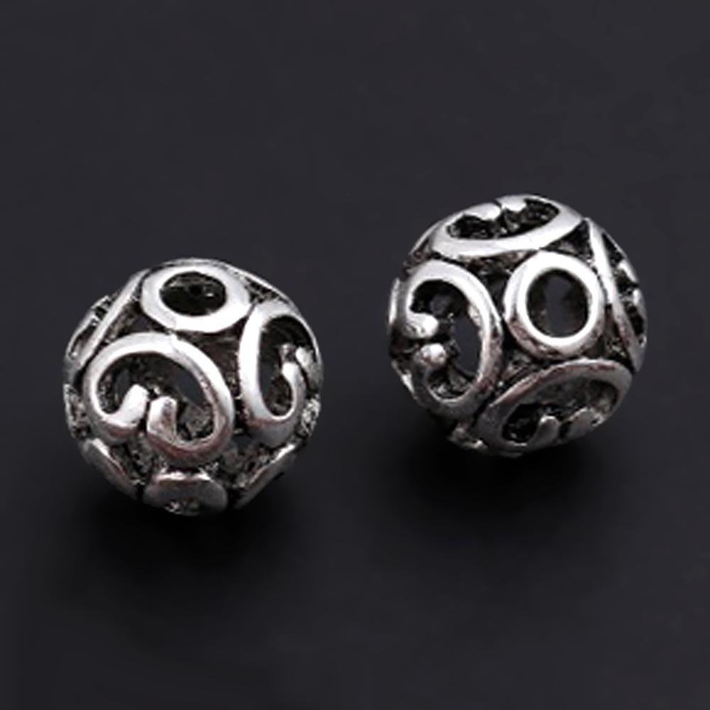 Металлическая бусина Шарик Узорный полый 0011063 серебряный цвет 12 мм