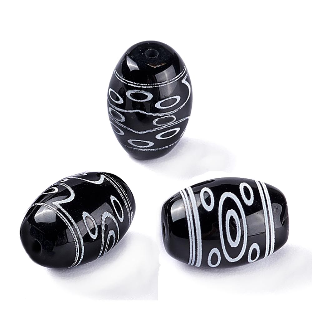 Бусина Дзи натуральный камень Агат черный с белым 3-глазая 0005901 цилиндр 10x6 мм