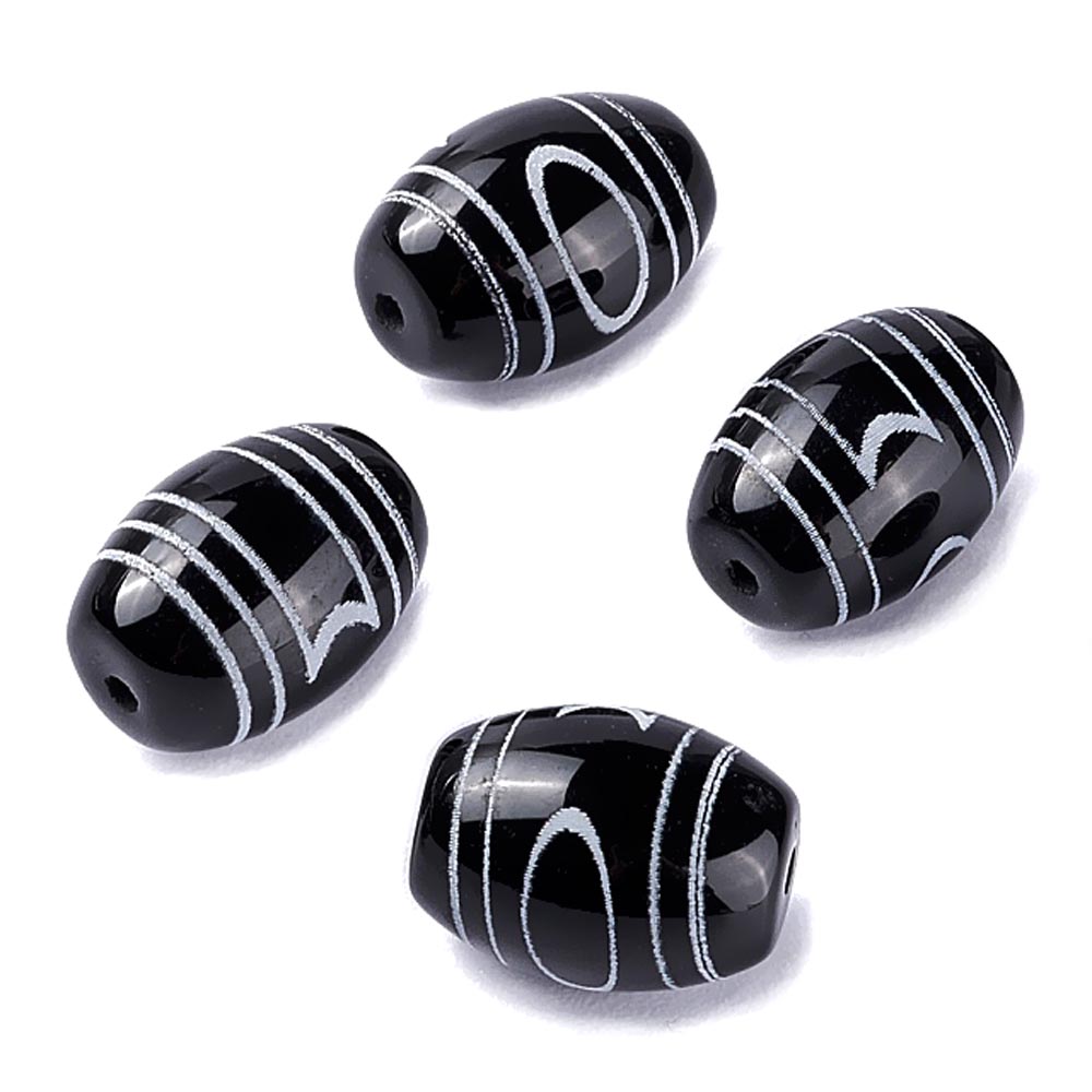 Бусина Дзи натуральный камень Агат черный с белым Небо и Земля 0011096 цилиндр 14x10 мм