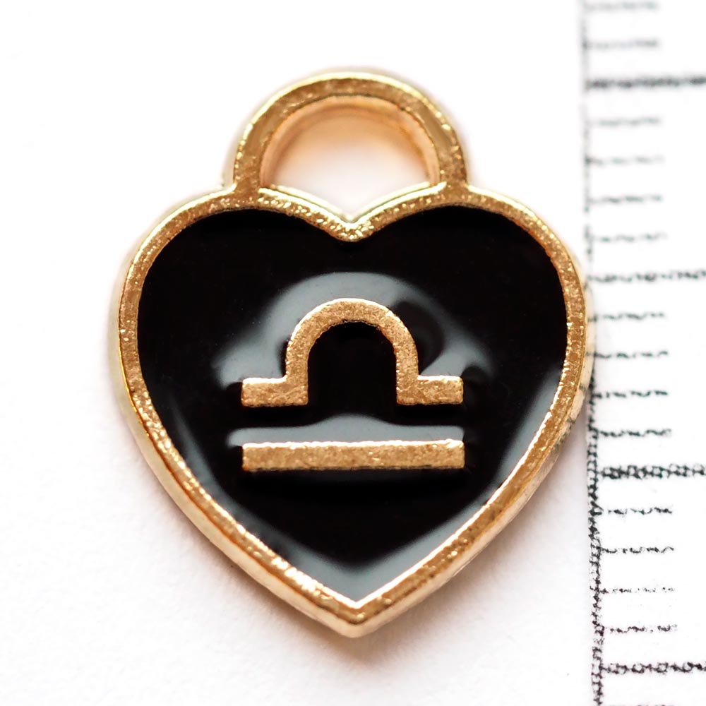 Подвеска Сердце со знаком зодиака Весы с черной эмалью 0011101 золотой цвет 14x12х1.5 мм