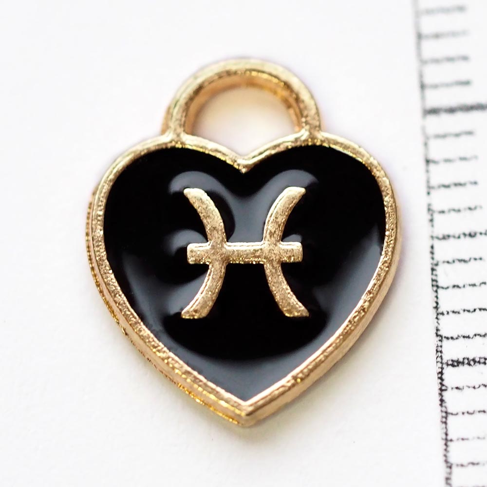 Подвеска Сердце со знаком зодиака Рыбы с черной эмалью 0011106 золотой цвет 14x12х1.5 мм