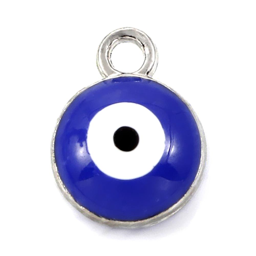 Подвеска Глаз от сглаза двухсторонний с эмалью 0011112 серебряный цвет 11x8х5 мм